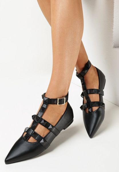 Balerinki Launa ze szpiczastym noskiem, który optycznie wysmukli sylwetkę. Osadzone na płaskiej podeszwie. Z pozoru prosty klasyczny krój przełamują doszyte paski ozdobione kwadratowymi ćwiekami, które nadają im rockowego charakteru. Balerinki zapinane na pasek ze sprzączką wokół kostki. Cholewka, jak i wkładka, wykonane ze skóry ekologicznej. To doskonały fason dla pań, które nie mają ochoty na […]