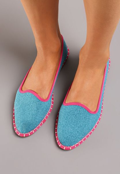 Niebiesko-Różowe Balerinki Loafersy z Kontrastowym Przeszyciem Wokół Podeszwy Anagolima