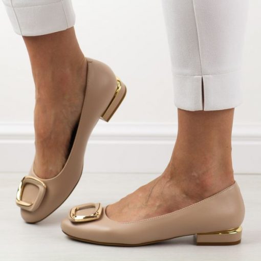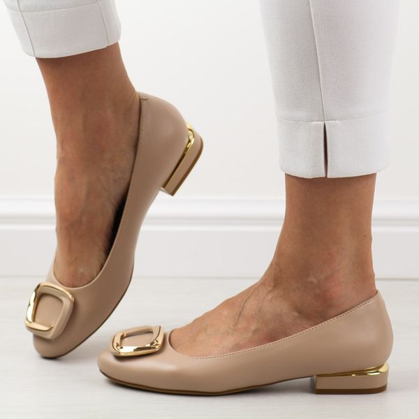 Nude baleriny damskie na obcasie Sergio Leone Bl203