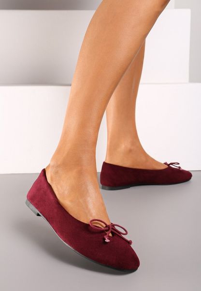 Bordowe Balerinki na Płaskiej Podeszwie z Kokardką i Wycięciami Lerivin