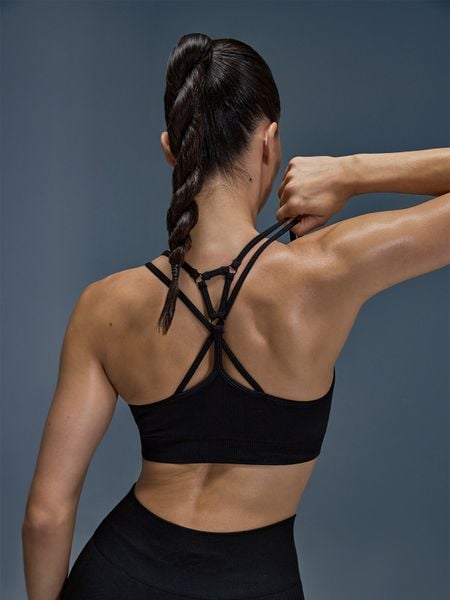 Czarny Sportowy Biustonosz Wykończony Marszczeniem z Wyjmowanymi Miseczkami Nevetisha