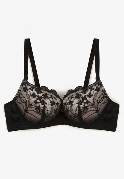Czarno-Beżowy Koronkowy Biustonosz o Kroju Push-Up Neladrith