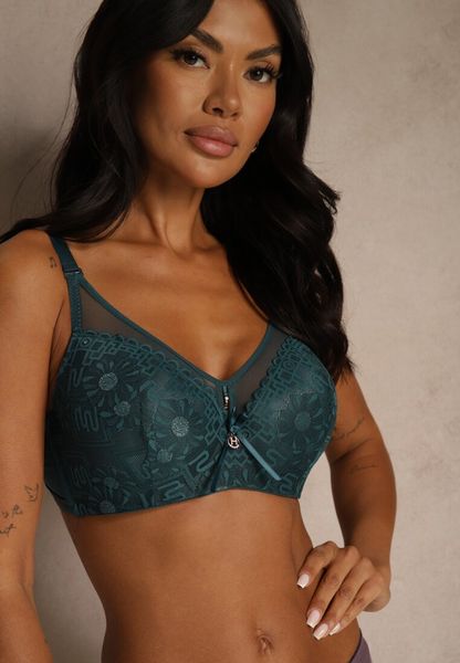 Ciemnozielony Koronkowy Biustonosz Ozdobiony Przezroczystą Wstawką Acalinai