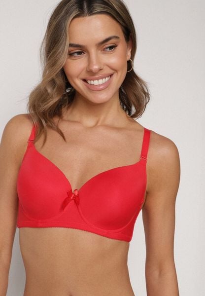 Czerwony Gładki Biustonosz Zdobiony Kokardką Ocerien