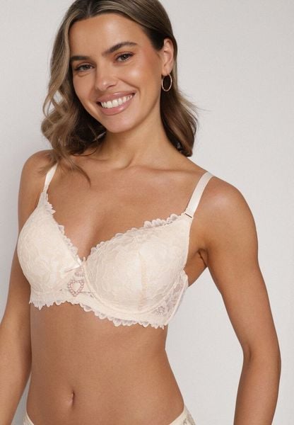 Beżowy Biustonosz z Koronką i Sercem z Cyrkonii Coratune