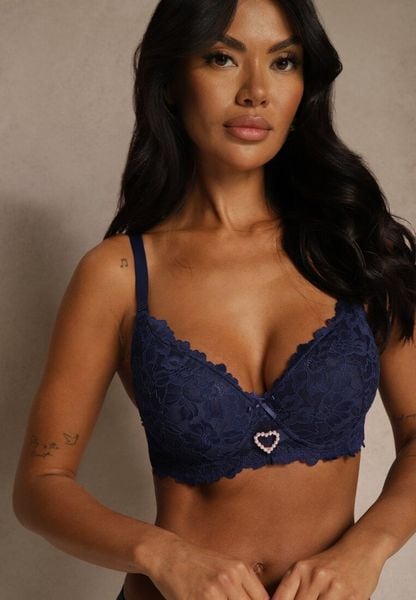 Granatowy Koronkowy Biustonosz Ozdobiony Cyrkoniowym Sercem Bothilei