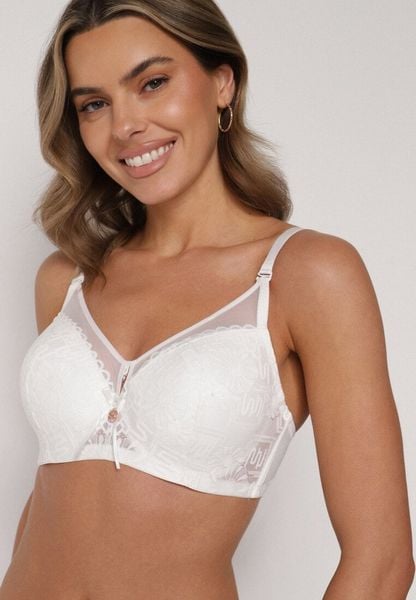 Jasnobeżowy Biustonosz z Koronką i Transparentną Wstawką Heliphine