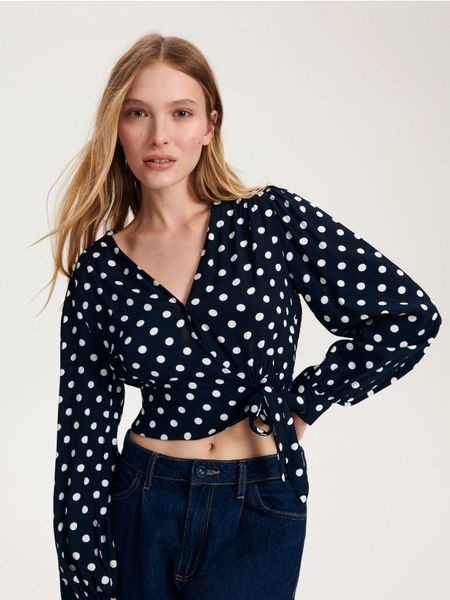 Bluzka o krótszym fasonie, wykonana z wiskozowej tkaniny.