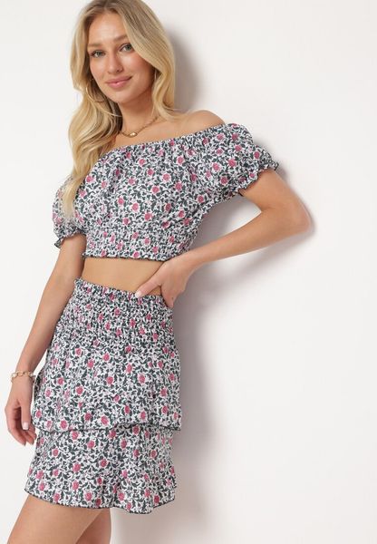 Komplet Ristella składający się z dwóch elementów: spódniczki oraz topu. Zachwyca pięknym, wielokolorowym printem w kwiaty. Idealny na letni piknik lub spotkanie przy kawie.