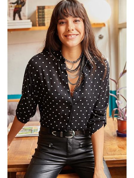 – czysta wiskoza- kołnierz: kent- zapięcie: listwa guzikowa- krój: luźny- wzór: kropki
