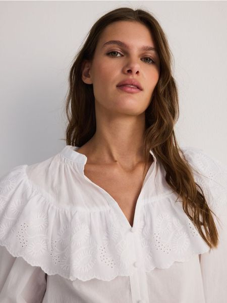 Bluzka o swobodnym kroju wykonana z bawełnianej tkaniny.