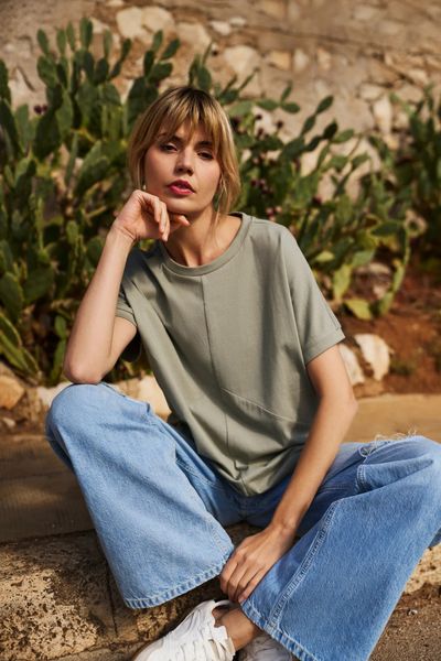 Bawełniana bluzka z krótkimi rękawami oliwkowa