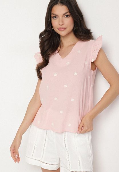 Różowa Bawełniana Bluzka z Falbankami i Haftowanymi Kwiatami Kolizea