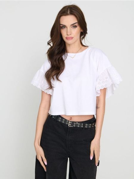 Sinsay – Bawełniana bluzka z koronkowymi rękawami – biały –