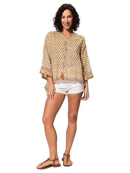 – czysta bawełna- dekolt: V- krój rękawów: rozszerzany do dołu- detale: ozdobne wiązanie- krój: dłuższe plecy- wzór: na całościWskazówka: Na metkach odzieży tej marki znajdują się rozmiary francuskie. Rozmiarówka została przez nas przeliczona. Podane do wyboru warianty rozmiarów odpowiadają standardowym europejskim rozmiarom konfekcji. Prosimy zapoznać się z zamieszczonym objaśnieniem rozmiarów.