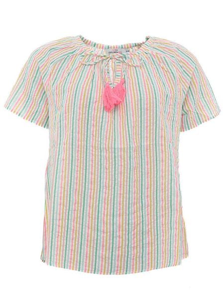 – czysta bawełna- dekolt: okrągły- detale: ozdobne wiązanie- krój: luźny- wzór: paski