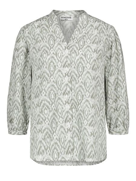 – dekolt: z rozcięciem- zapięcie: listwa guzikowa- długość rękawa: 3/4- krój: prosty- wzór: na całości