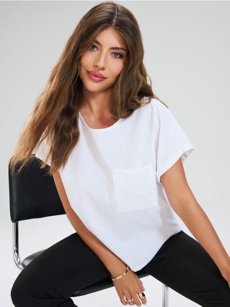 Sinsay – Wiskozowa bluzka z ozdobną kieszonką – biały –