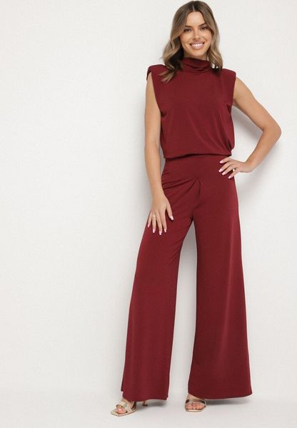 Bordowy Komplet Bluzka z Wiązaniem i Szerokie Spodnie Halazea