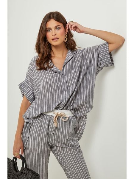 – kołnierz: kent- zapięcie: listwa guzikowa- długość rękawa: półdługi- zakończenie rękawa: podwijane- krój: oversized- wzór: paskiWskazówka: Na metkach odzieży tej marki znajdują się rozmiary francuskie. Rozmiarówka została przez nas przeliczona. Podane do wyboru warianty rozmiarów odpowiadają standardowym europejskim rozmiarom konfekcji. Prosimy zapoznać się z zamieszczonym objaśnieniem rozmiarów.