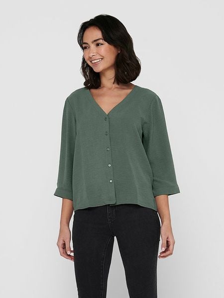 – dekolt: V- zapięcie: listwa guzikowa- długość rękawa: 3/4- krój: prosty- look: jednokolorowy
