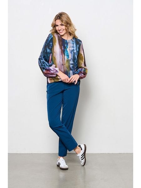 – dekolt: okrągły- zapięcie: guzik na plecach- zakończenie rękawów: elastyczne- krój: luźny- wzór: przejście kolorów