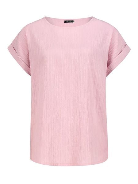 – dekolt: okrągły- zakończenie rękawa: podwijane- detale: marszczenia- krój: prosty- look: jednokolorowy