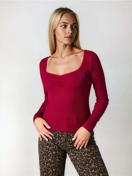 Sinsay – Prążkowana bluzka z marszczeniami – fioletowy –