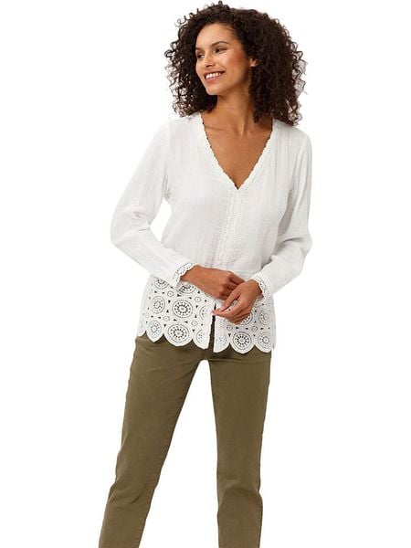 – czysta bawełna- dekolt: V- zapięcie: listwa guzikowa- detale: szydełkowana koronka- krój: prosty- look: jednokolorowy