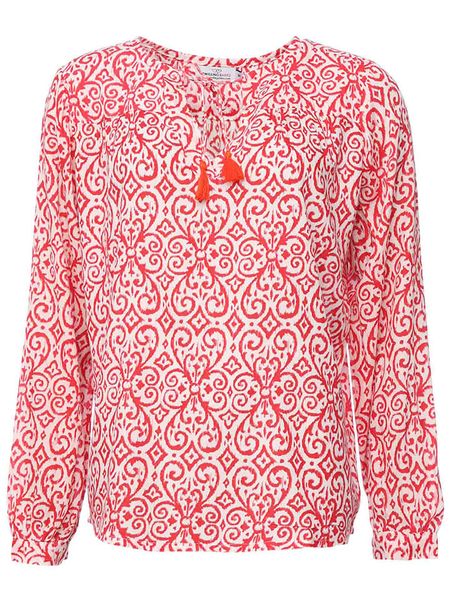 – czysta wiskoza- dekolt: V- zakończenie rękawów: guzik- detale: ozdobne wiązanie- krój: prosty- wzór: na całości