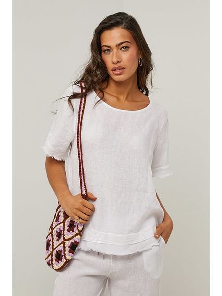 – czysty len- dekolt: łódka- detale: frędzelki, cekiny- krój: luźny- look: jednokolorowyUwaga: Na metkach odzieży tej marki znajdują się rozmiary francuskie. Rozmiarówka została przez nas przeliczona. Podane do wyboru warianty rozmiarów odpowiadają standardowym europejskim rozmiarom konfekcji. Prosimy zapoznać się z zamieszczonym objaśnieniem rozmiarów.