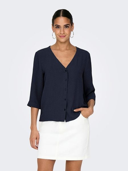– z dodatkiem poliestru pochodzącego z recyklingu- dekolt: V- zapięcie: listwa guzikowa- długość rękawa: 3/4- krój: prosty- look: jednokolorowy