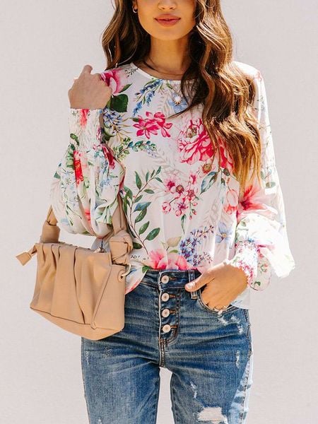 – dekolt: okrągły- rękaw: bufiasty- zakończenie rękawów: marszczenie- krój: luźny- wzór: kwiatowyUwaga: Przy wyborze właściwego wariantu zaleca się korzystanie z tabeli rozmiarów.