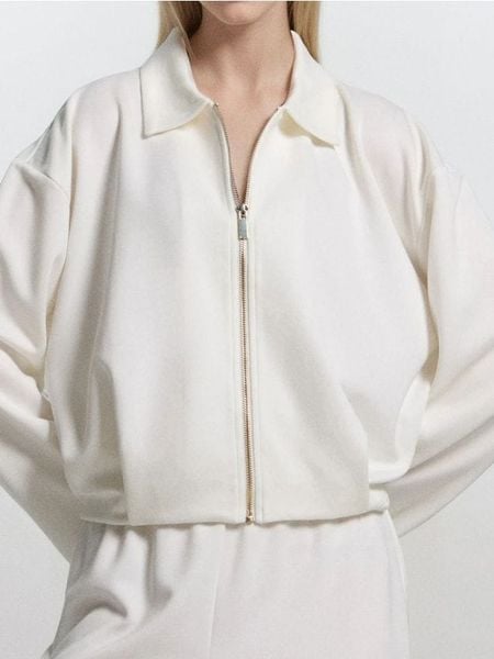 Sinsay – Strukturalna bluzka z kołnierzykiem – kremowy – Jakość soft touch – bardzo miękka w dotyku dzianina z dodatkiem wiskozy.