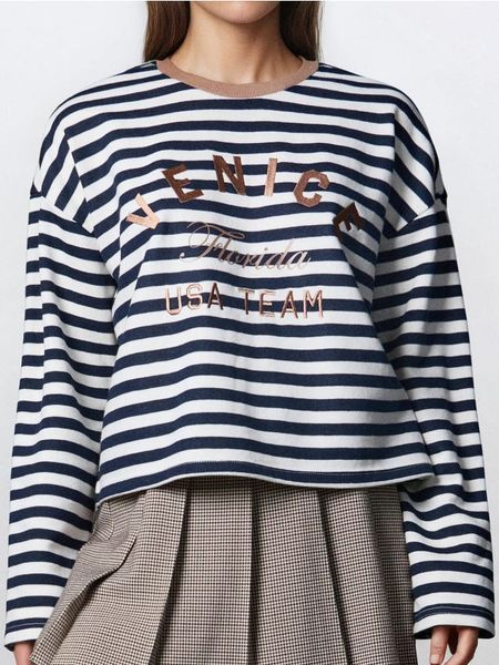 Sinsay – Bluzka w paski z napisem – granatowy –