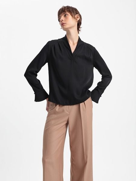 – dekolt: V- zakończenie rękawów: mankiet na guzik- krój: luźny- look: jednokolorowy