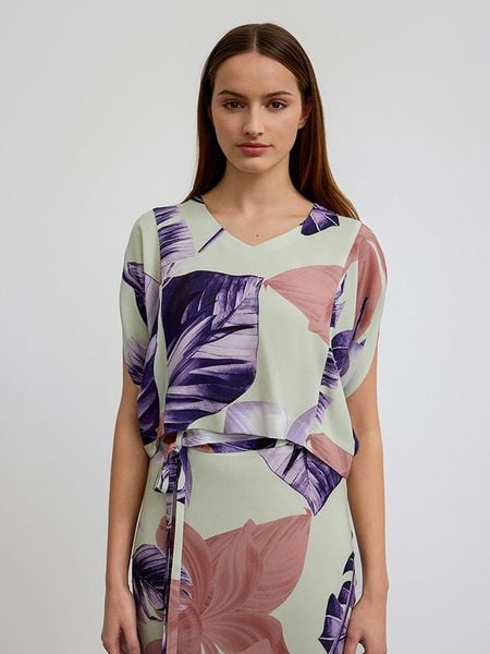 – czysta wiskoza- dekolt: V- krój rękawów: nietoperz- długość rękawa: półdługi- krój: luźny- wzór: na całościUwaga: Przy wyborze właściwego wariantu zaleca się korzystanie z tabeli rozmiarów.