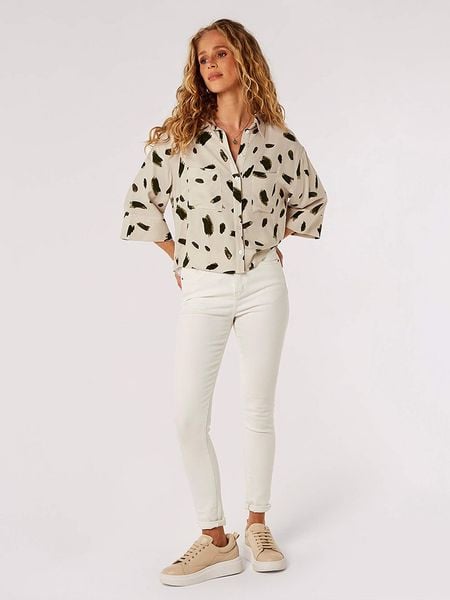 – zrównoważony rozwój: w 100% z wiskozy LENZING™ ECOVERO™- kołnierz: kent- zapięcie: listwa guzikowa- długość rękawa: 3/4- krój: luźny- wzór: na całościWłókna wiskozowe LENZING™ ECOVERO™ wchodzące w skład tego produktu spełniają wysokie standardy ekologiczne oznakowania ekologicznego UE. Pochodzą one ze zrównoważonych, certyfikowanych źródeł drewna. Przy produkcji włókna celulozowe są pozyskiwane z masy drzewnej i przetwarzane […]