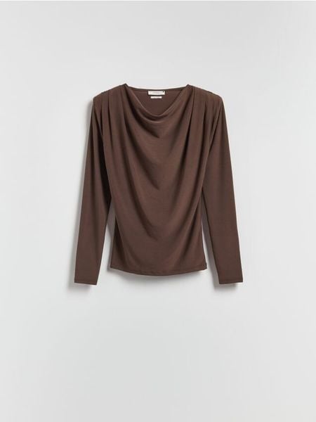 Bluzka z poduszkami na ramionach – ciemnobrązowy
