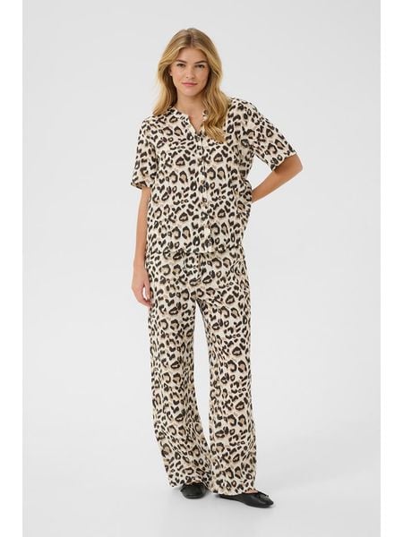 – czysty len- dekolt: z rozcięciem- zapięcie: listwa guzikowa- krój: prosty- wzór: panterka