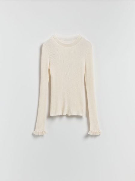 Dzianinowa bluzka z jedwabiem – złamana biel