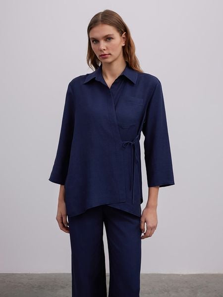 – z dodatkiem lnu- kołnierz: kent- zapięcie: sznurowanie- kieszenie: na piersi- długość rękawa: 7/8- krój: luźny- look: jednokolorowyUwaga: Przy wyborze właściwego wariantu zaleca się korzystanie z tabeli rozmiarów.