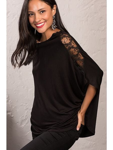 – dekolt: łódka- krój rękawów: nietoperz – detale: koronka- krój: luźny- look: jednokolorowyUwaga: Podczas wybierania odpowiedniego rozmiaru należy kierować się tabelą, widoczną na ostatnim zdjęciu.