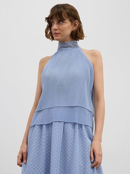 – ramiączka: na szyję- zapięcie: sznurowanie- detale: falbany- krój: prosty- wzór: kropki