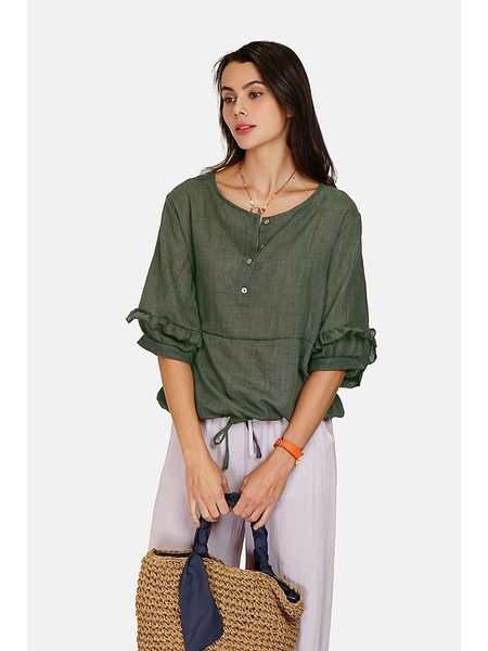 – czysty len- dekolt: okrągły- zapięcie: skrócona listwa guzikowa- długość rękawa: 3/4- krój: luźny- look: jednokolorowyWskazówka: Na metkach odzieży tej marki znajdują się rozmiary francuskie. Rozmiarówka została przez nas przeliczona. Podane do wyboru warianty rozmiarów odpowiadają standardowym europejskim rozmiarom konfekcji. Prosimy zapoznać się z zamieszczonym objaśnieniem rozmiarów.