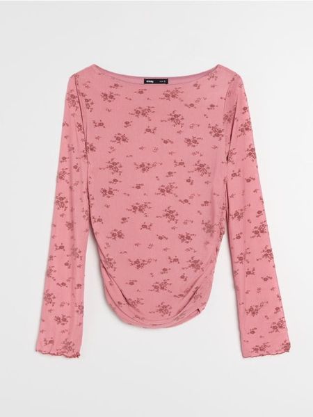Sinsay – Bluzka ze wzorem z ozdobnymi marszczeniami – różowy –
