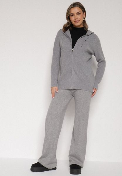 Ciemnoszary Komplet z Wełną i Bawełną Szerokie Spodnie i Rozpinana Bluzka z Kapturem Reikania