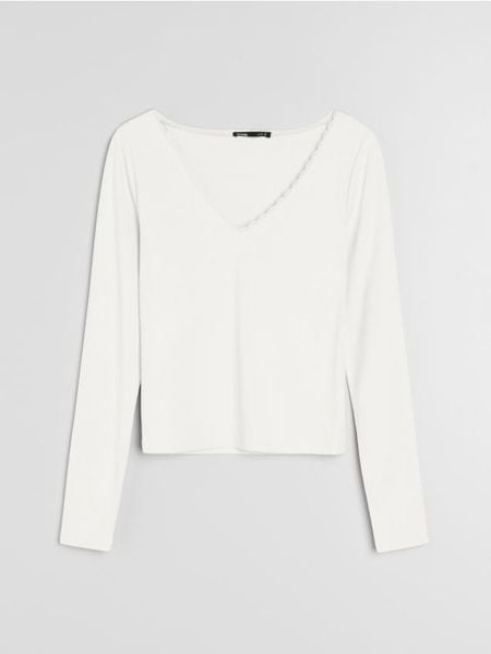 Sinsay – Bluzka z długim rękawem i koronką przy dekolcie – kremowy –
