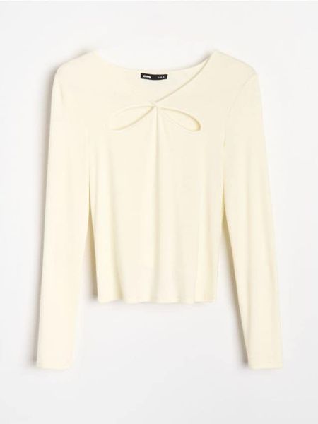 Sinsay – Bluzka z ozdobnym dekoltem i wiskozą – żółty –