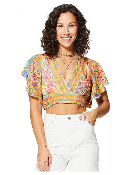 – dekolt: V- zapięcie: wiązane tasiemki- krój rękawów: motylek- krój: cropped- wzór: na całości